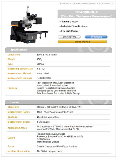 | Equipment Detail | Thin Film Thickness Measurement |