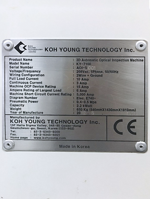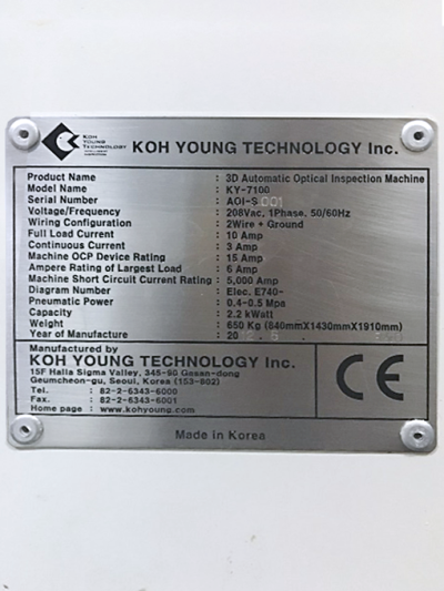 KOH YOUNG, KY-7100, 3D Automatic Optical Inspection Machine