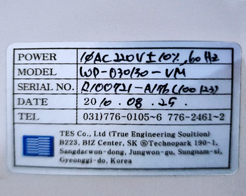 ID 199180029 Description Power 1ф AC220V±10%, 60Hz Manufacturer TES Model WD-030130-VM Vintage 2010.08.25 Serial No. R100721-A176C1001232 Quantity 1 Condition As-is EquipmentDetail Track 7,676 작성일 Main text 22.05.03 22.05.03 댓글목록 등록된 댓글이 없습니다.