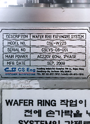 ID 161160003 Description Wafer 6" Manufacturer CS Eng Model CSE-W220 Vintage 2008.09 Serial No. CSEVS-08-001 Quantity 1 Condition As-is EquipmentDetail Expander 7,741 작성일 Main text 22.05.03 22.05.03 댓글목록 등록된 댓글이 없습니다.